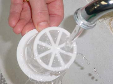 Rinse filter under running water.